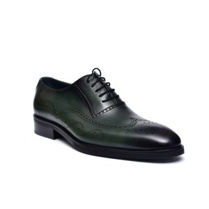 این کفش مجلسی مردانه زیبا و شیک دارای سوراخهای ریز تزئینی بر روی خود است که باعث شده است که انتخابی عالی برای پوشیدن با کت و شلوار در موقعیتهای رسمی باشد. حتی این کفش را میتوان به شلوار جین هم پوشید و از داشتن استایلی منحصر به فرد لذت برد. جالب است بدانید کفش بروگ به صورت بوت هم طراحی میشود.